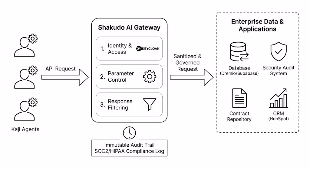 The Shakudo AI Gateway offers four critical pillars of control that make Kaji, and any other AI agent, truly enterprise-ready: