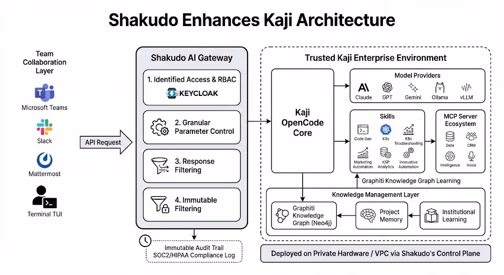 Consider the "Enterprise Reality Check" – the comparison between "Open Source / Personal" AI and "Kaji Enterprise." Shakudo is the platform that allows Kaji to truly shine as an "Enterprise" solution.